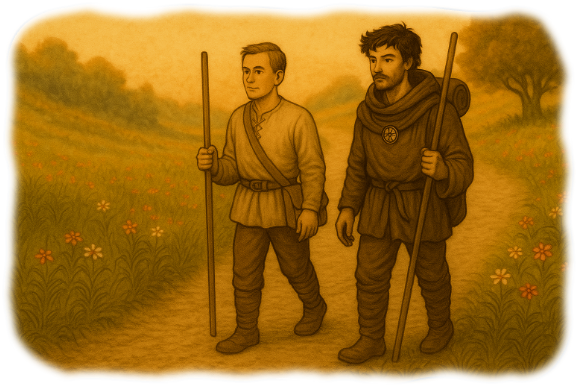 A wide, well-trodden path stretched out before them, and Companion walked with steady purpose, sure of his direction. Seeker walked beside him, leaning on his staff for support.